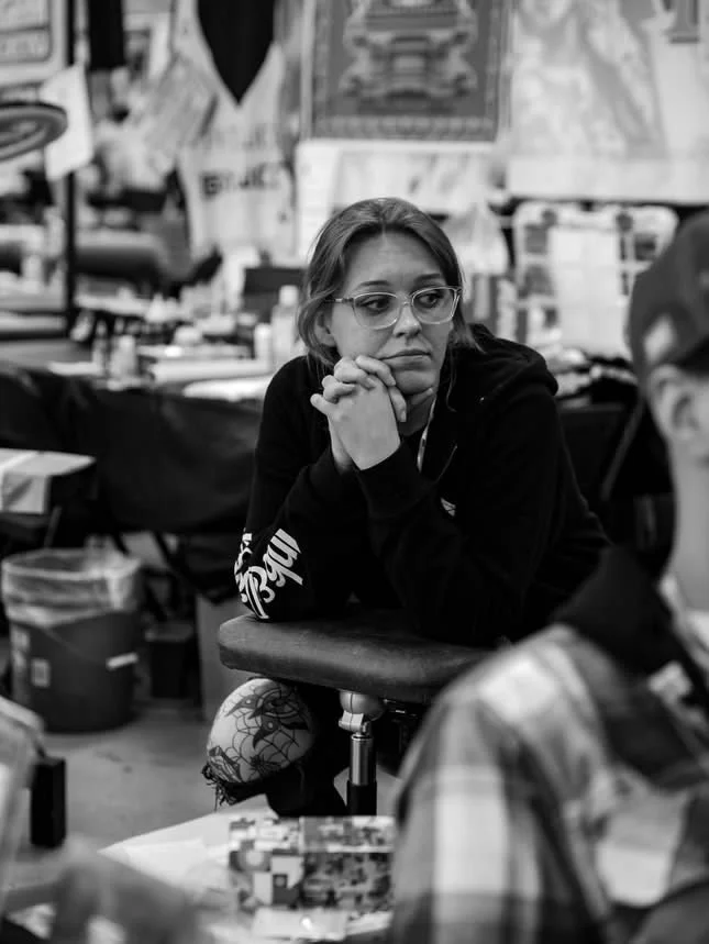 Bryn Riihimaki is a tattooer from Los Angeles who began her tattooing journey with Ink & Dagger in 2021. With a background in illustration, design, and curation, Bryn brought her trained eye to Roswell,. Here, she honed her passion and technique for tattoos.