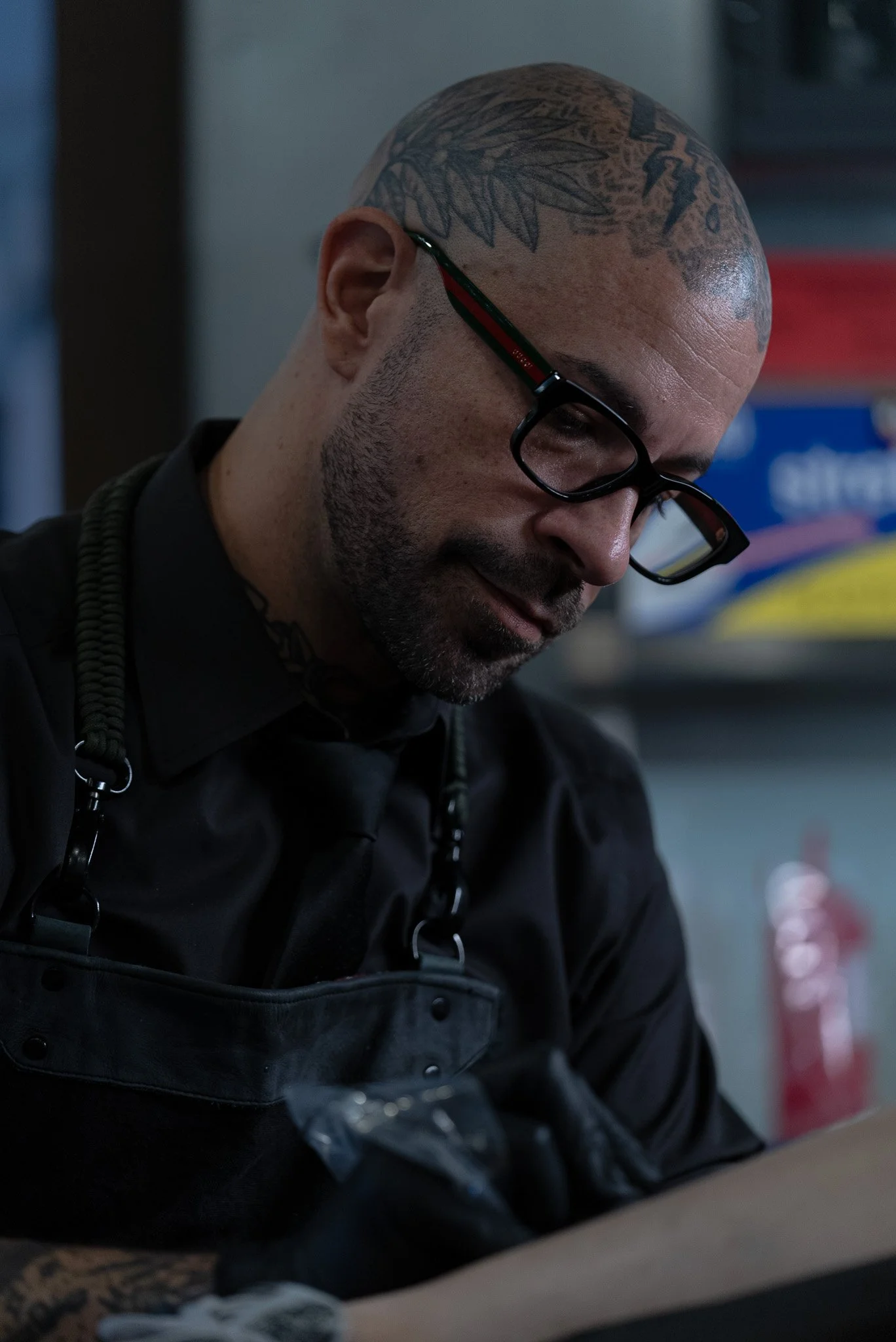 On top of that, he admires the classics: painters, sculptors, and all the art history that shaped his own creative lens. This mix of influences shows up in his tattoos as designs that feel layered, dynamic, and packed with detail.