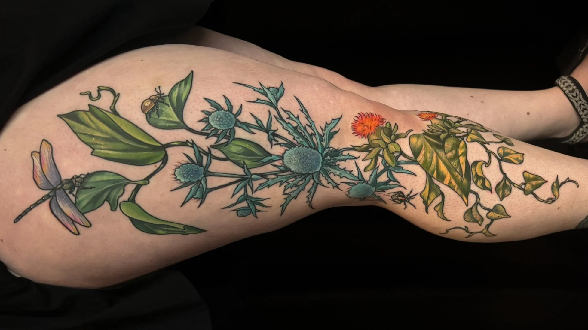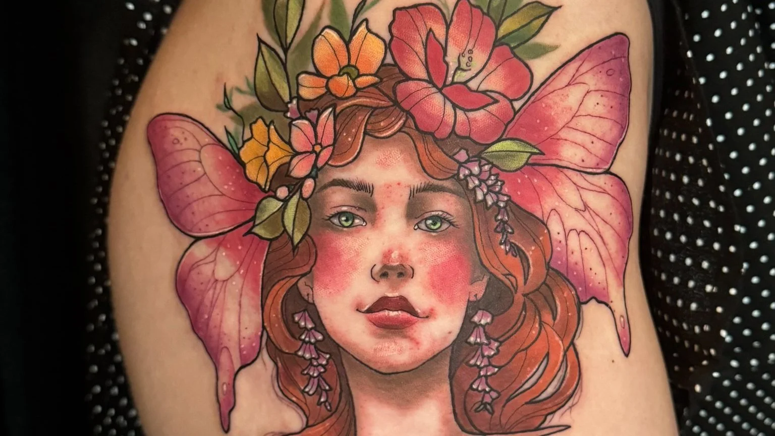 As a classically trained artist, Mel found her calling in Neo-traditional and illustrative tattoos, infusing her designs with whimsy and botanical details. Her creative vision is influenced by the Art Nouveau period, folk art, outsider art, contemporary artist Kiki Smith, and the work of printmakers.